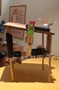 Die Schülis bauen, werkeln und basteln, was das Zeug hält. Zuletzt sind eine große dreidimensionale Murmelbahn und ein lustiger „Gruselkasten“ entstanden. Wenn noch nicht geschehen, müsst Ihr Euch das vorführen lassen, es ist beeindruckend gut!
